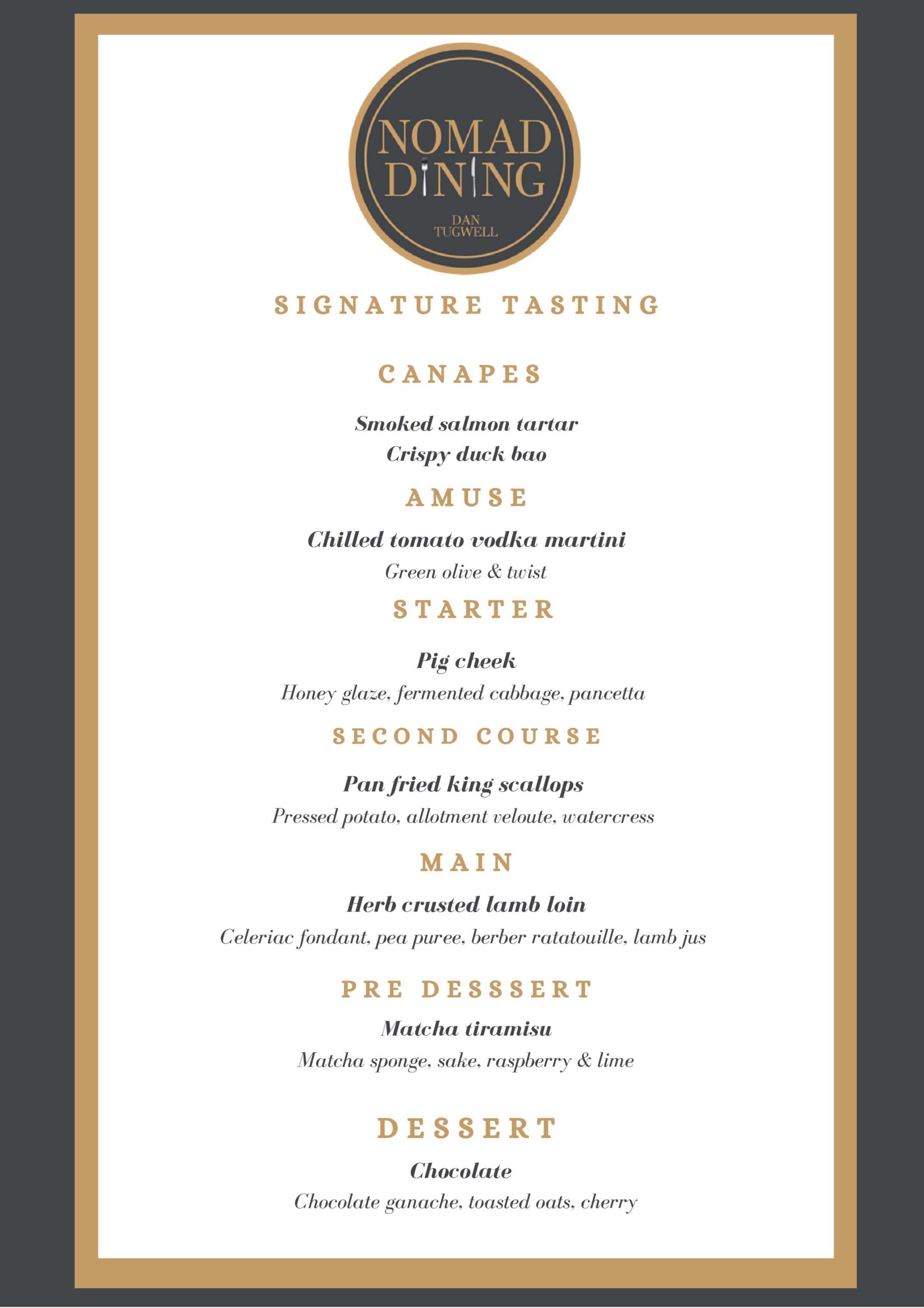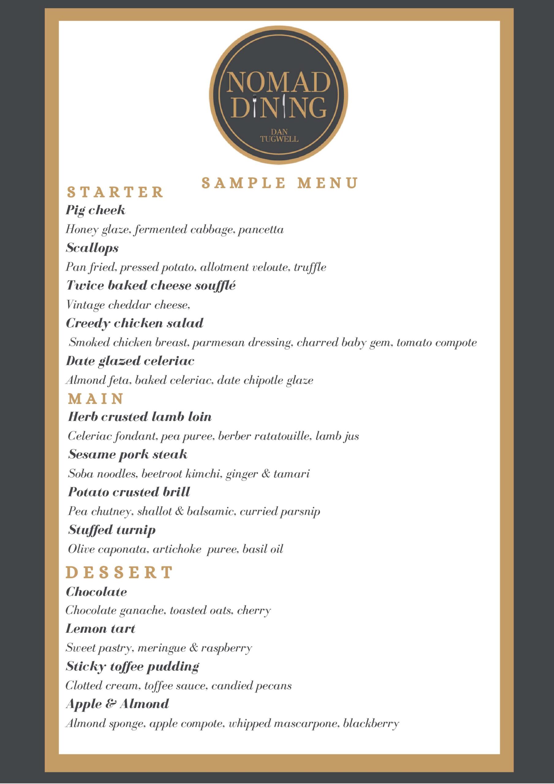 Dan catered for our special wedding anniversary with family in North Devon. We chose from Nomads signature menu. Every dish was sublime. The food was of the highest standard and Dan was lovely to have in the kitchen. He got the balance of professionalism and being social just right. We couldn't have been more pleased and would definitely like to book Nomad again.